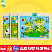巧灵珑木制9片拼图30款装少儿动物卡通益智早教积木玩具1-3-5周岁