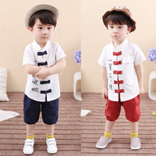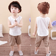 男儿童短袖套装 棉麻2017新款宝宝童装 1-4岁韩版儿童套装夏季潮