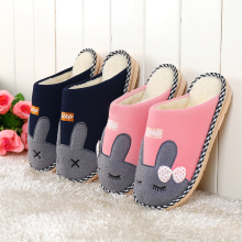柯嘉怡 冬季可爱兔家居包跟棉拖鞋居家防滑厚底情侣毛毛地板拖鞋