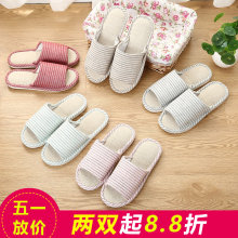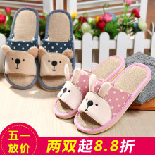 四季卡通居家居室内防滑木地板棉拖鞋夏季男女情侣亚麻拖鞋凉拖鞋