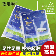 加厚塑封膜A4 8C照片菜单制作过塑膜护卡膜塑封机用过胶纸 50张