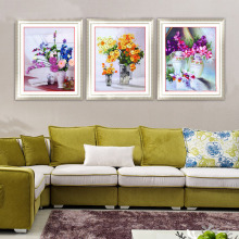 新品丝带绣三联画 手工爱好学校教学 客厅卧室挂画十字绣 三联画
