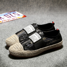 青春潮流男士草编鞋夏季透气男鞋韩版帆布鞋迷彩潮鞋一脚蹬懒人鞋
