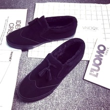 男鞋冬季保暖加绒休闲鞋透气加棉一脚蹬懒人鞋冬天棉鞋全黑色冬鞋