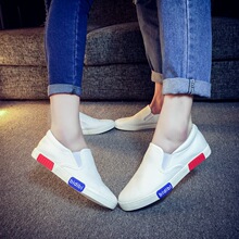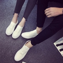 情侣鞋韩版潮流2017夏季新款潮皮面pu休闲百搭男白鞋子懒人情侣鞋