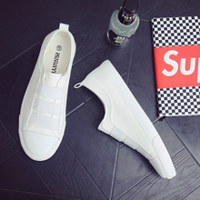懒人不系带韩版潮流白鞋男2017夏季新款低帮百搭透气pu皮面帆布鞋