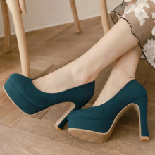 欧美风复古大牌绒面磨砂粗跟高跟鞋女圆头浅口防水台厚底夜店单鞋