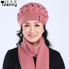 中老年帽子女针织毛线帽秋冬妈妈帽围巾两件套冬季兔毛夹棉老人帽