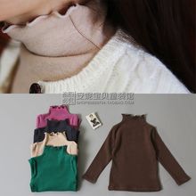 韩版童装女童半高领打底衫长袖纯棉儿童T恤16秋冬木耳边公主上衣