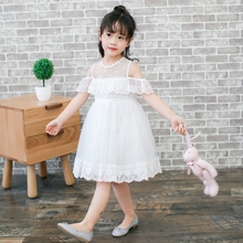 女童露肩连衣裙2017夏装新款韩版儿童蕾丝花边领公主裙蓬蓬网纱裙