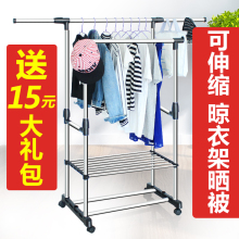 佛罗伦晾衣架落地折叠双杆室内外阳台升降移动单杆简易晒被架挂衣