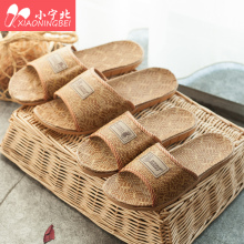 小宁北 夏季藤编亚麻草拖鞋男女室内家居家用情侣防滑地板凉拖鞋
