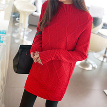秋冬季冬款半高领毛衣女士套头中长款加长韩版宽松大码加厚针织衫