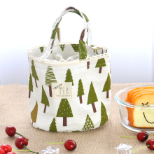 日式简约便当包棉麻抽绳保温桶大号防水拉链便当袋手提圆形饭盒袋