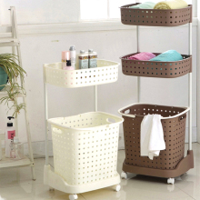浴室置物架多层塑料脏衣篮置物架可移动洗衣机脏衣收纳篮多色可选