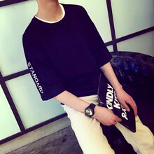 夏季衣服男7分短袖t恤男士半袖七分袖中袖个性韩版潮流宽松潮学生