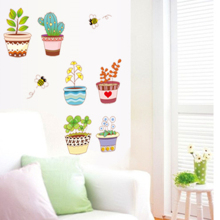 可爱花盆栽墙贴纸儿童房卡通墙纸贴画卧室客厅温馨装饰背景可移除