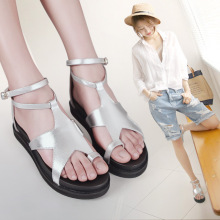 2016春夏新款女鞋真皮中跟凉鞋皮带扣松糕底厚底鞋沙滩星星鞋女