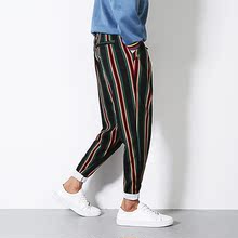ST90港风男装 条纹裤男长裤韩版修身锥形小脚休闲裤潮流青年裤子