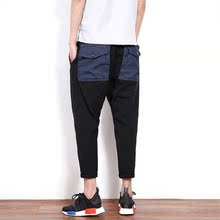 ST90港风男装 夏季哈伦九分裤男宽松小脚潮流青年个性拼接男裤子