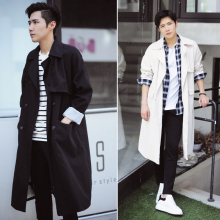 韩版中长款纯色休闲风衣男士2016秋季青年长款宽松风衣外套潮外衣