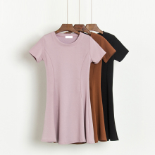 2017春夏新品百搭简约纯色棉质裙摆修身连衣裙收腰短袖打底裙女潮