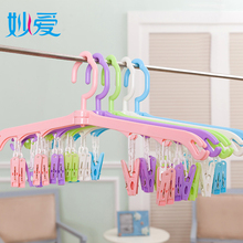 婴儿衣架儿童宝宝内衣多功能塑料小夹子挂钩圆形家用防风大晾衣架