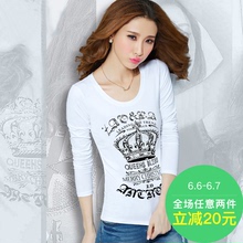 2017夏季新款女装韩版修身烫钻印花半袖体恤纯棉白色短袖t恤女潮