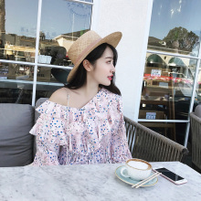 「卢洁云」CARIEDO 夏季新款碎花小清新上衣荷叶边宽松露肩女衬衫