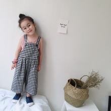 2017年夏季男女童宝宝背带裤黑米白格子背带裤韩版宽松阔腿连体裤