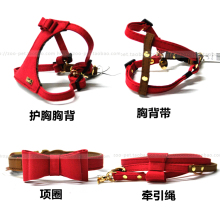 包邮日本原单Puppytie宠物牛皮项圈胸背带拉绳宠物牵引绳牵引带