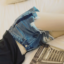 ISSDM 2017新款韩版毛边破洞牛仔短裤女春新款提臀显瘦热裤靴裤潮