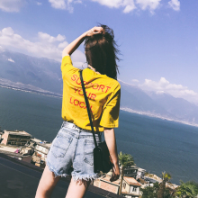 ISSDM 韩版新款后背字母印花宽松短袖t恤女夏破洞简约打底衫四色
