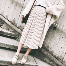 ISSCC 韩版纯色丝绸百褶裙高腰半身裙春季中长款宽松显瘦a字裙潮