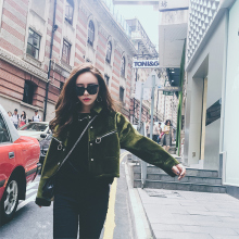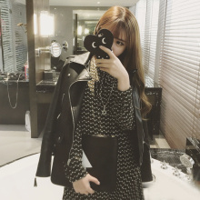 ISSCC 水洗皮长袖拉链立领机车皮衣女春季PU皮外套宽松显瘦皮夹克