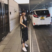 ISSDM裙摆开叉无袖假两件V领吊带裙星座碎花雪纺连衣裙春秋中长款