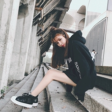 ISSCC 春秋新款字母印花抽绳连帽卫衣女韩版潮学生中长款宽松显瘦
