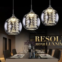 LED餐厅灯水晶餐厅吊灯三头现代简约圆形客厅饭厅吧台餐桌餐吊灯