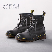 青婉田2017新款粗跟厚底马丁靴女英伦风圆头真皮短靴单靴春秋靴子
