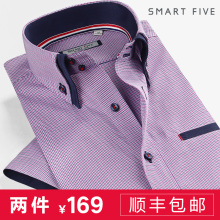 [两件169元] [拍下自动减] 夏季纯棉商务休闲短袖衬衫男修身潮流