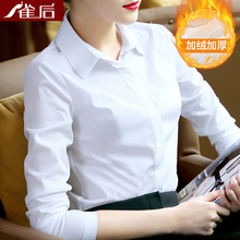 雀后春装韩版加绒加厚衬衫职业百搭夹棉工装保暖打底长袖白衬衣女