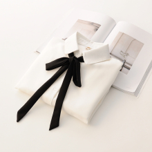 春装新款日系学院风黑色蝴蝶结系带长袖衬衣 韩范雪纺白色衬衫女