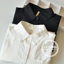 2016春装新款小清新复古文艺纯色翻领白色衬衫黑色长袖衬衣女装