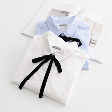 秋装新款日系学院风小清新黑色蝴蝶结系带白色衬衣学生长袖衬衫女