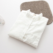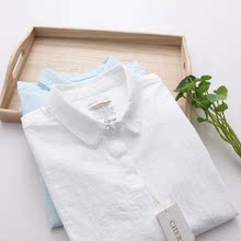 稻香谷/竹节棉/韩版文艺全棉打底长袖棉麻褶皱白衬衫衣女秋冬新款
