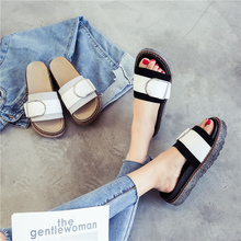 2017新款厚底拖鞋女夏时尚外穿皮带金属扣一字凉拖学生百搭室外潮