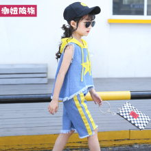 童装女童夏装2017新款韩版潮时尚欧美风中大儿童宝宝吊带牛仔套装