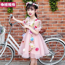 童装女童连衣裙2017夏装新款韩版中大童花朵公主裙女孩网纱裙子潮
