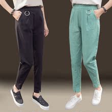 裤子2017夏季新款韩版宽松显瘦学生休闲高腰亚麻哈裤裤棉麻九分裤