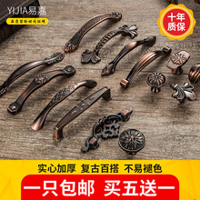 易嘉 欧式复古红古铜橱柜门拉手 中式仿古美式刻花抽屉衣柜门把手